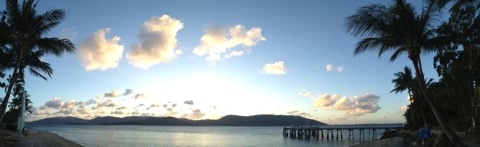 This evening, we find ourselves looking out over the ocean on the southern end of Day Dream Island, watching the sun go down, waiting for tonight’s open air movie to start - wonder if we will make it more than 5min tonight…