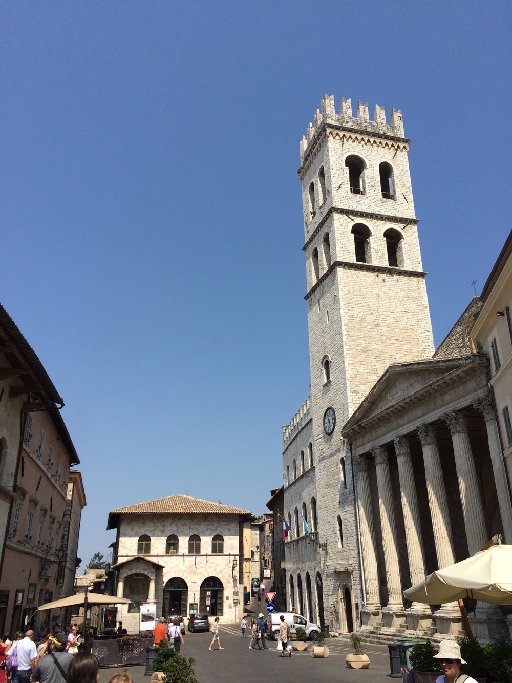 The goat track wound us slowly around and up the side of the hill leading to Assisi. We eventually popped out on the side of the main road where we more comfortably continued heading to the top of the hill found a carpark in Piazza Matteotti.