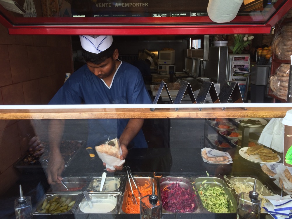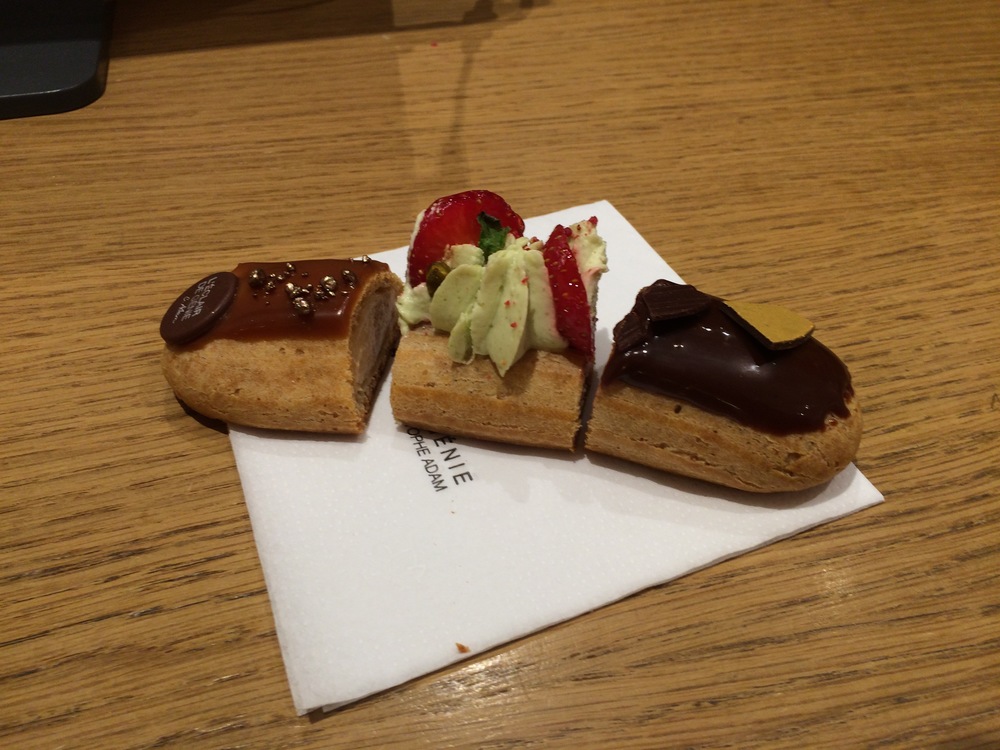 We arrived back at the apartment just as the little man was waking up - a good hour of sleep under his belt, and just in time for lunch. For lunch, we decided to check out the Falafel bar about 5 doors down from the apartment - it was awesome. For 6.50 Euro we got a falafels, salads, cooked eggplant, hummus and yoghurt in a nice fresh pocket bread - it was absolutely beautiful… and for desert… 2 doors up… we sampled decadent éclairs from L’Eclair de Genie - which as the name suggests - were magical. We had Chocolate, Strawberry and Pistachio, and Salted Caramel.