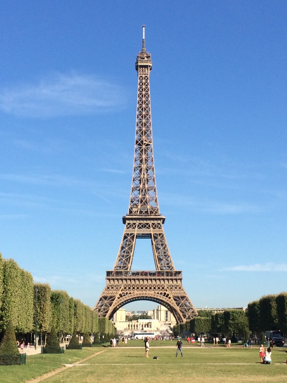 It wasn’t long before the Eiffel Tower appeared from behind the many other tall buildings along the street - at least we were on track. A pleasant walk through some gardens brings us to the base of the tower - and its only 9:15am… We made it in pretty good time - only 20 busloads of people in front of us.
