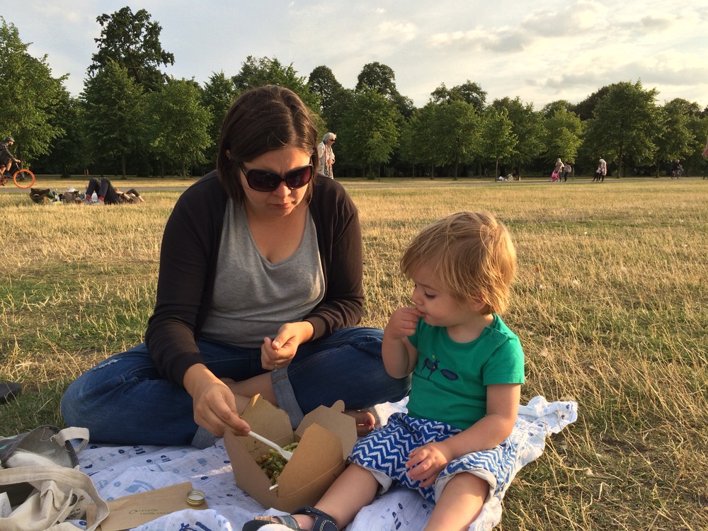 On the last two evenings we have enjoyed having a picnic dinner in Kensington Gardens, right at the back of the Palace – Archie has become quite fond of the ducks at the big pond.