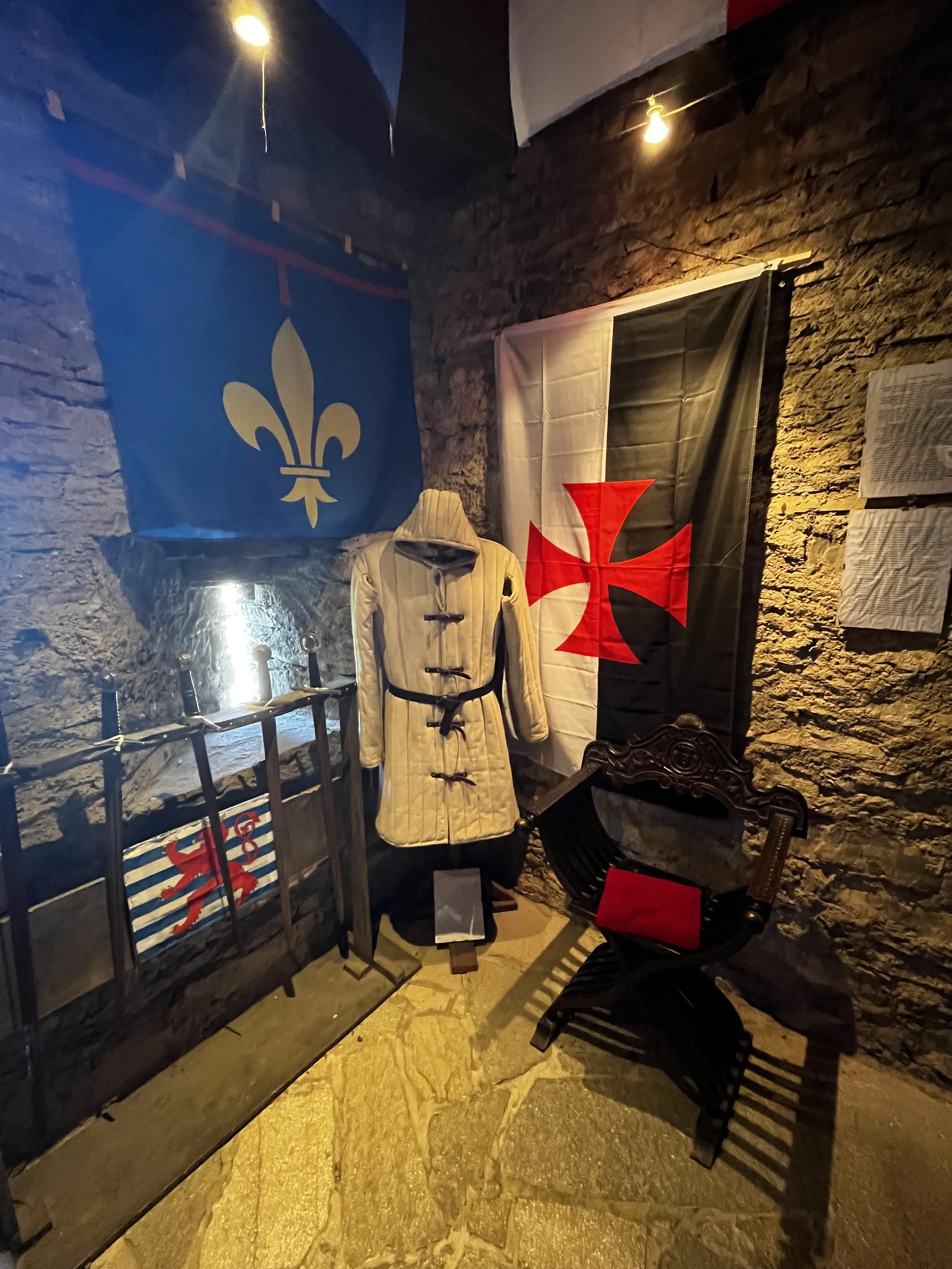 Inside the castle proper was a guard who would place you in the stocks and pretend to chop your head off. A bit of a laugh for A.