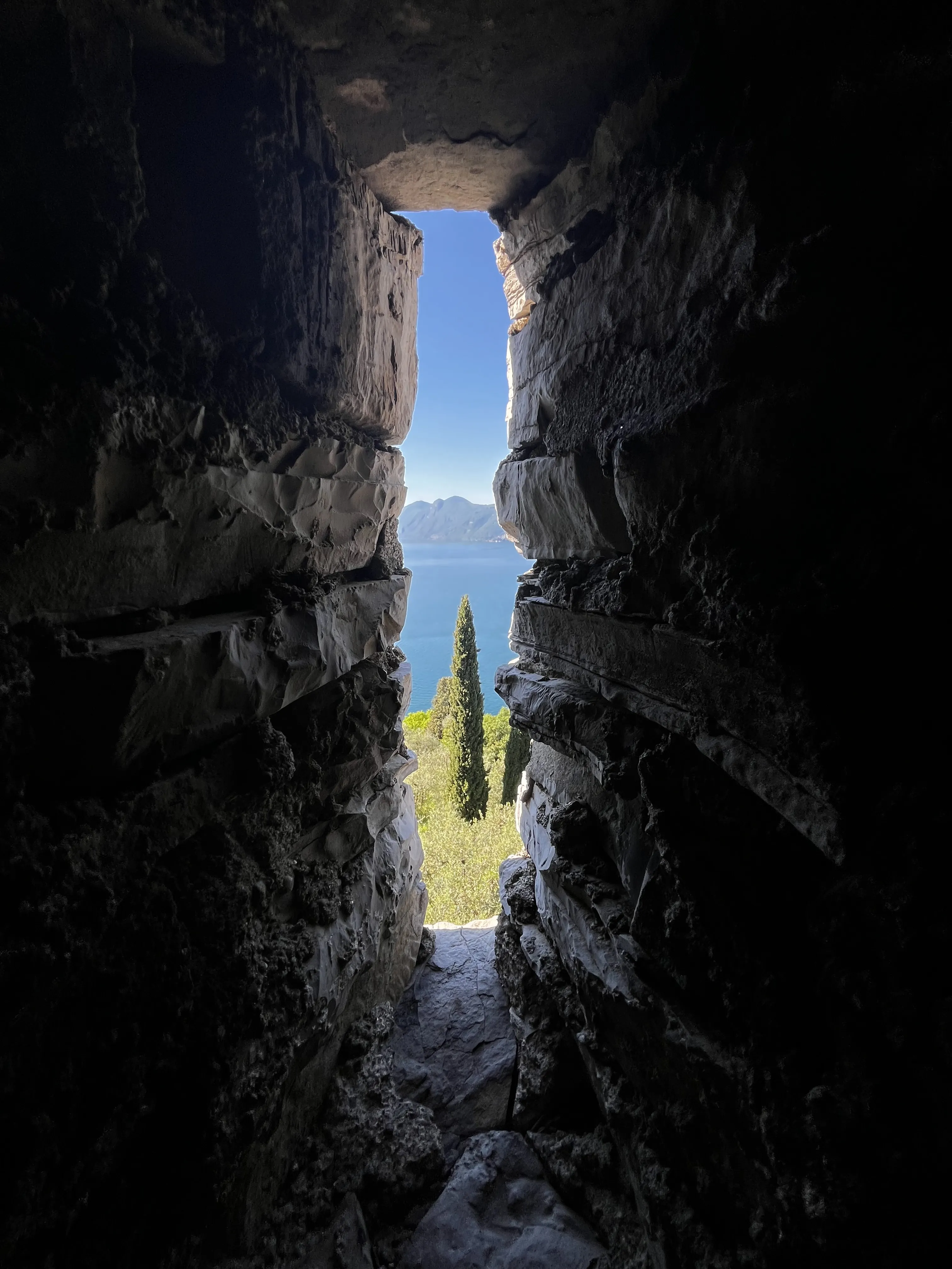It’s clear why the castle tower was built here: steep, almost impassable mountains to the back, and views across all areas of the lake to the front and sides.
