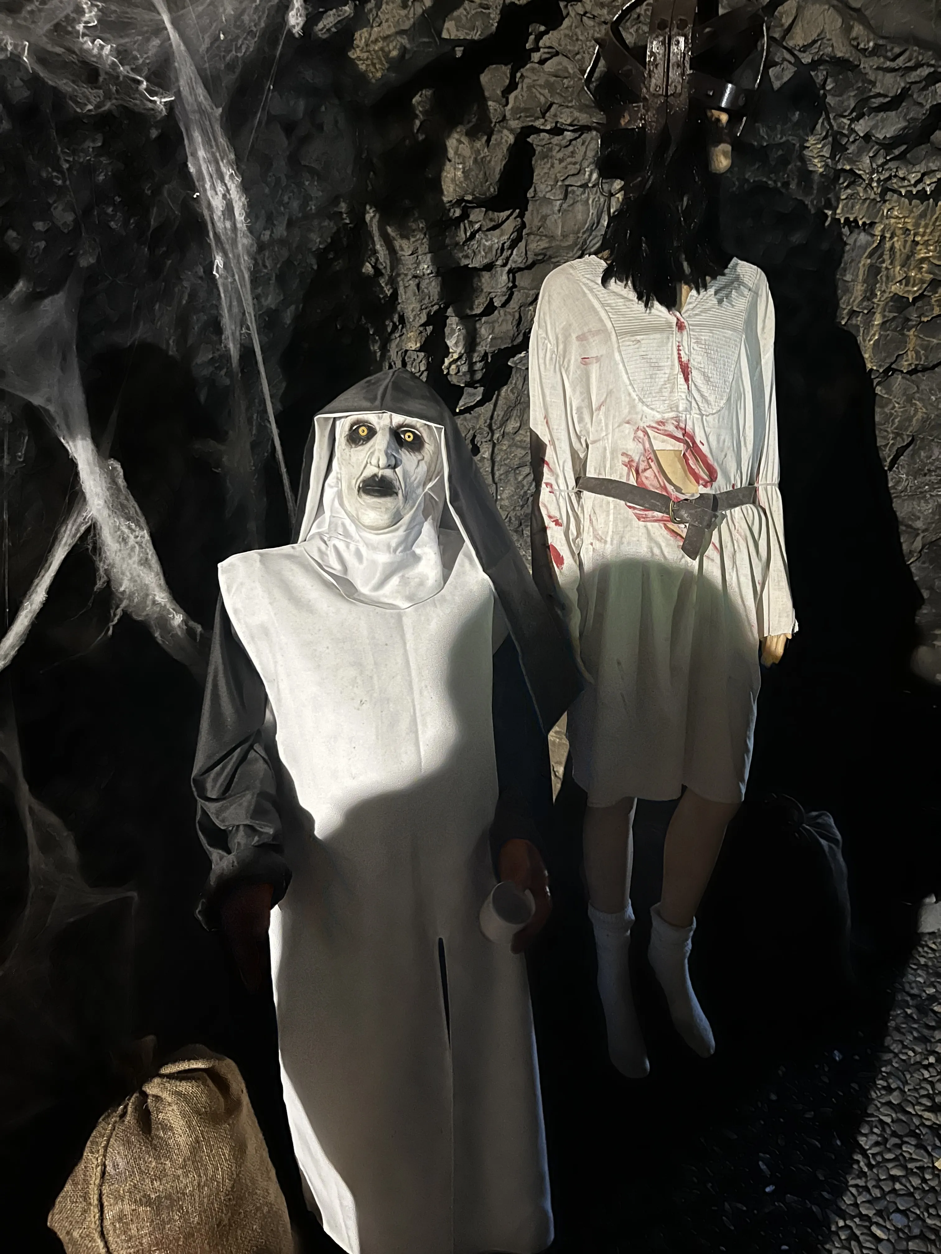 The locals who maintain the castle place ghost-like figures around the grounds, along with some other more quirky figures.
