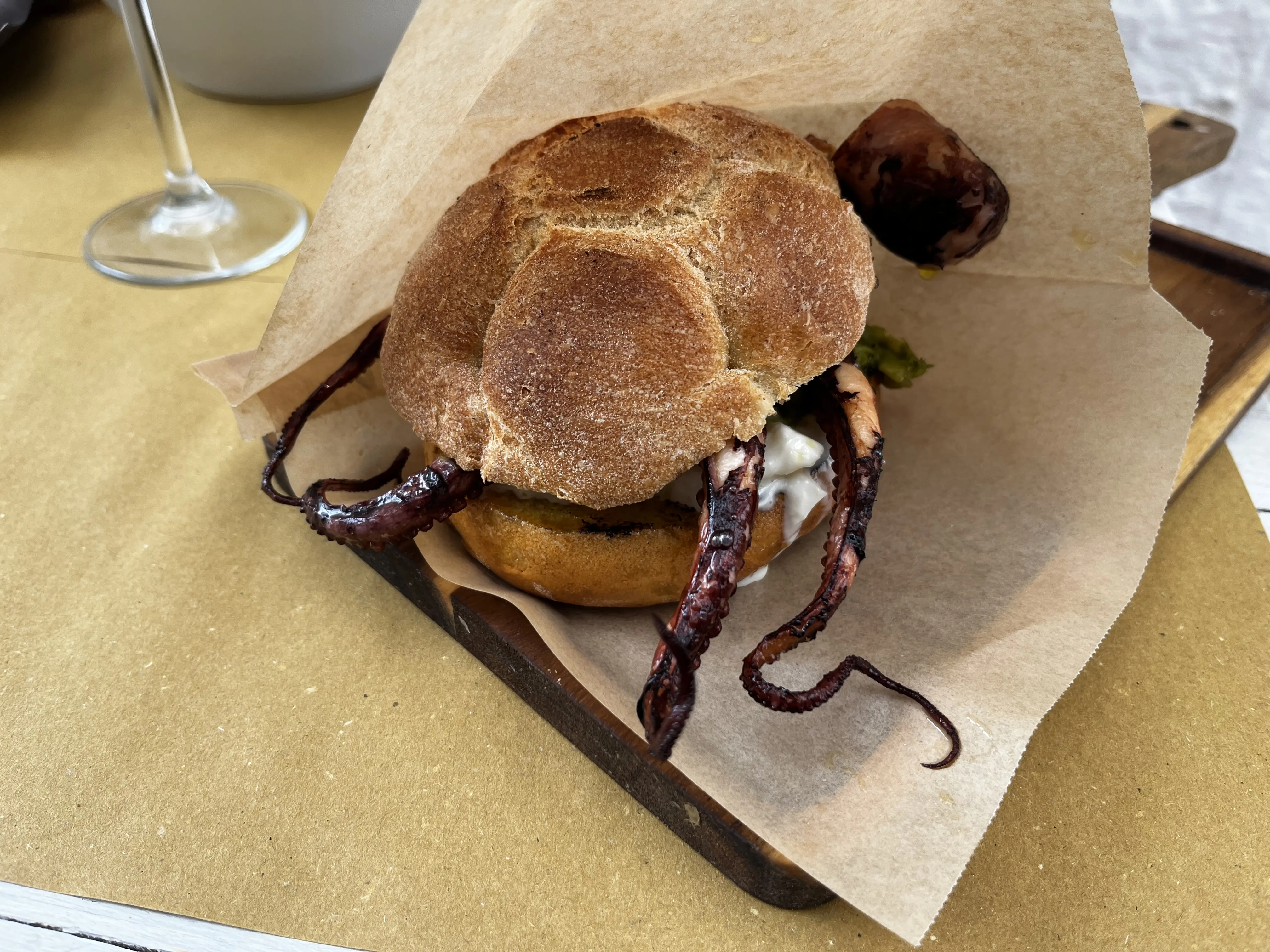 As we wandered through town, we found a nice little place for lunch: a Margherita pizza, two octopus panini (our favourite), and an octopus salad (we love octopus 🐙).