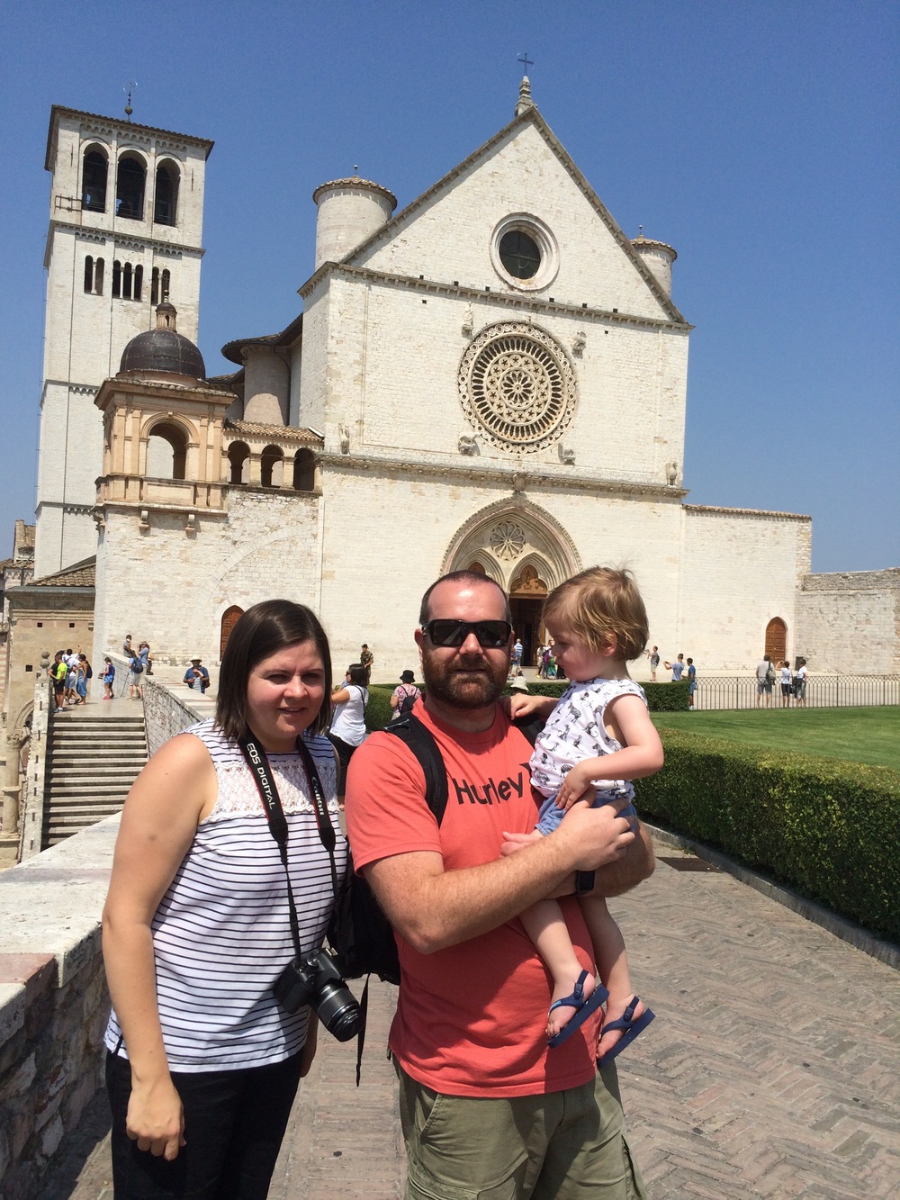 We left the cars and started walking down the hill through the beautiful (but very hot) streets of Assisi. We wandered our way down to the bottom of the hill and ended up at the Basilica of San Francesco d’Assisi.