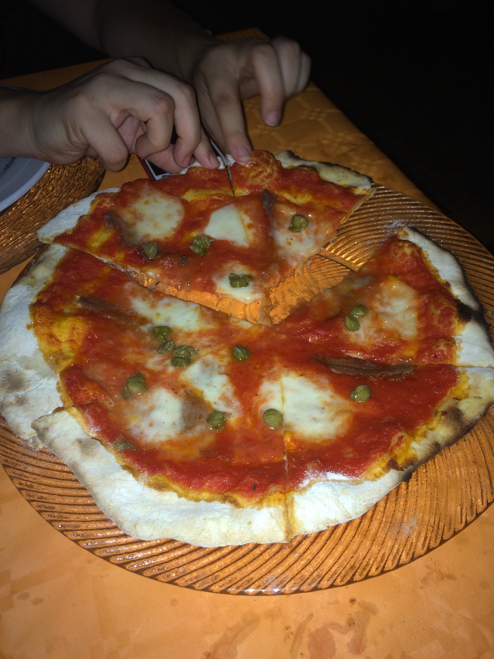 As with the night of the feast a few nights before, we started with a selection of antipasti. This was then followed by a procession of pizzas - one after the other - the continued to come until we could eat no more. We did finish the night with a Nutella pizza and some Limoncello however.