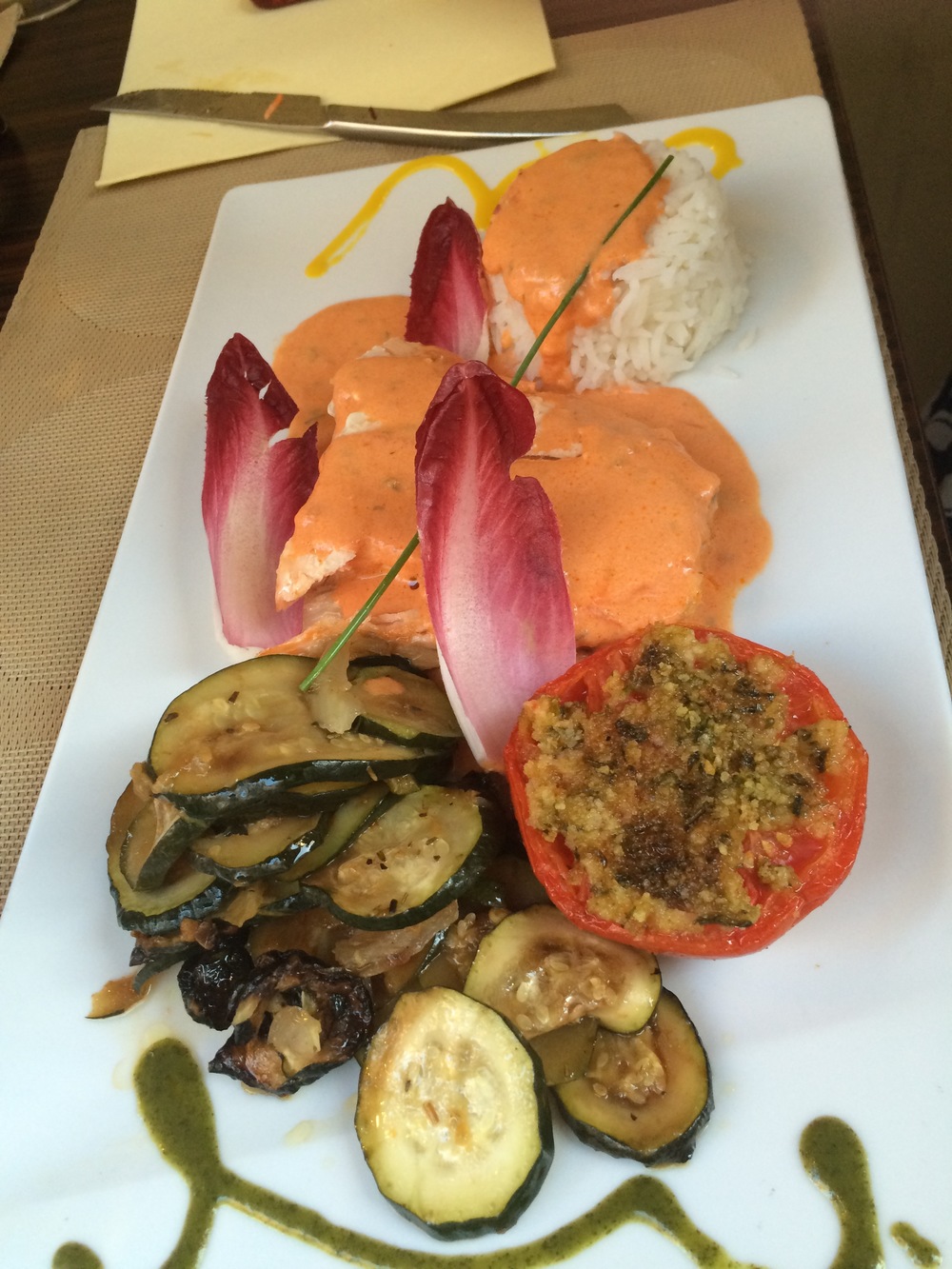In the late evening the temperature had cooled even further which made it very pleasant for an evening walk before dinner. We settled on what looked to be a nice little place in a side street a few streets back from the main streets. It was quieter and fortunately less smokers were here (actually none which is very rare in France).