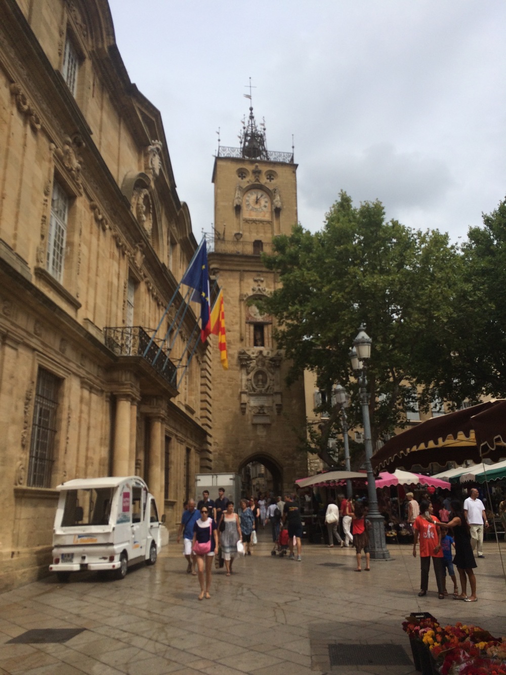 In the late afternoon our wanderings lead us back to the Cours Mirabeau - where the markets were just being set up. Walking through the markets I couldn’t resist trying some of the freshly baked artisanal madeleines, and ended up buying one of each flavour (almond, citrus, orange, chocolate, and plain) us for afternoon tea - they were delicious, and possibly repeatable tomorrow afternoon.