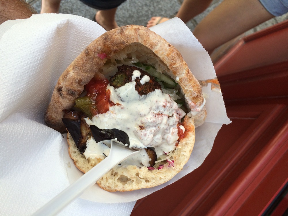 We arrived back at the apartment just as the little man was waking up - a good hour of sleep under his belt, and just in time for lunch. For lunch, we decided to check out the Falafel bar about 5 doors down from the apartment - it was awesome. For 6.50 Euro we got a falafels, salads, cooked eggplant, hummus and yoghurt in a nice fresh pocket bread - it was absolutely beautiful… and for desert… 2 doors up… we sampled decadent éclairs from L’Eclair de Genie - which as the name suggests - were magical. We had Chocolate, Strawberry and Pistachio, and Salted Caramel.