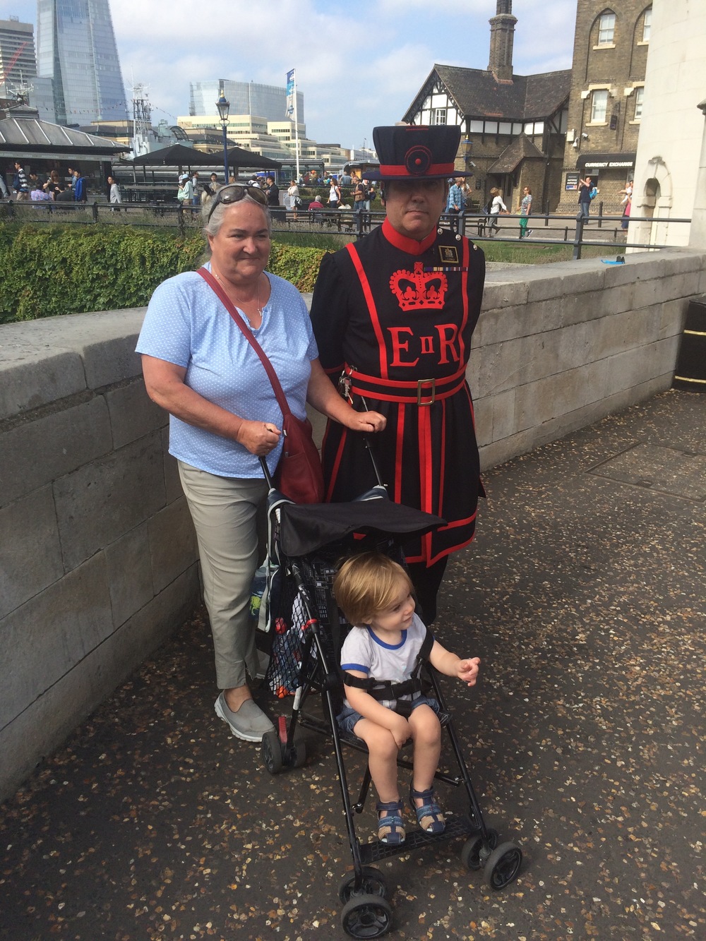 Today we set out reasonably early and caught the train to the Tower of London. Getting there early was a great plan – there was no queue and we went straight in. Laura and I missed the Tower of London last time we were here (2008), so had it on the list to see this time round. We spend a good hour or so wandering around the grounds, and Archie seemed to enjoy himself – entertaining the Beefeaters.