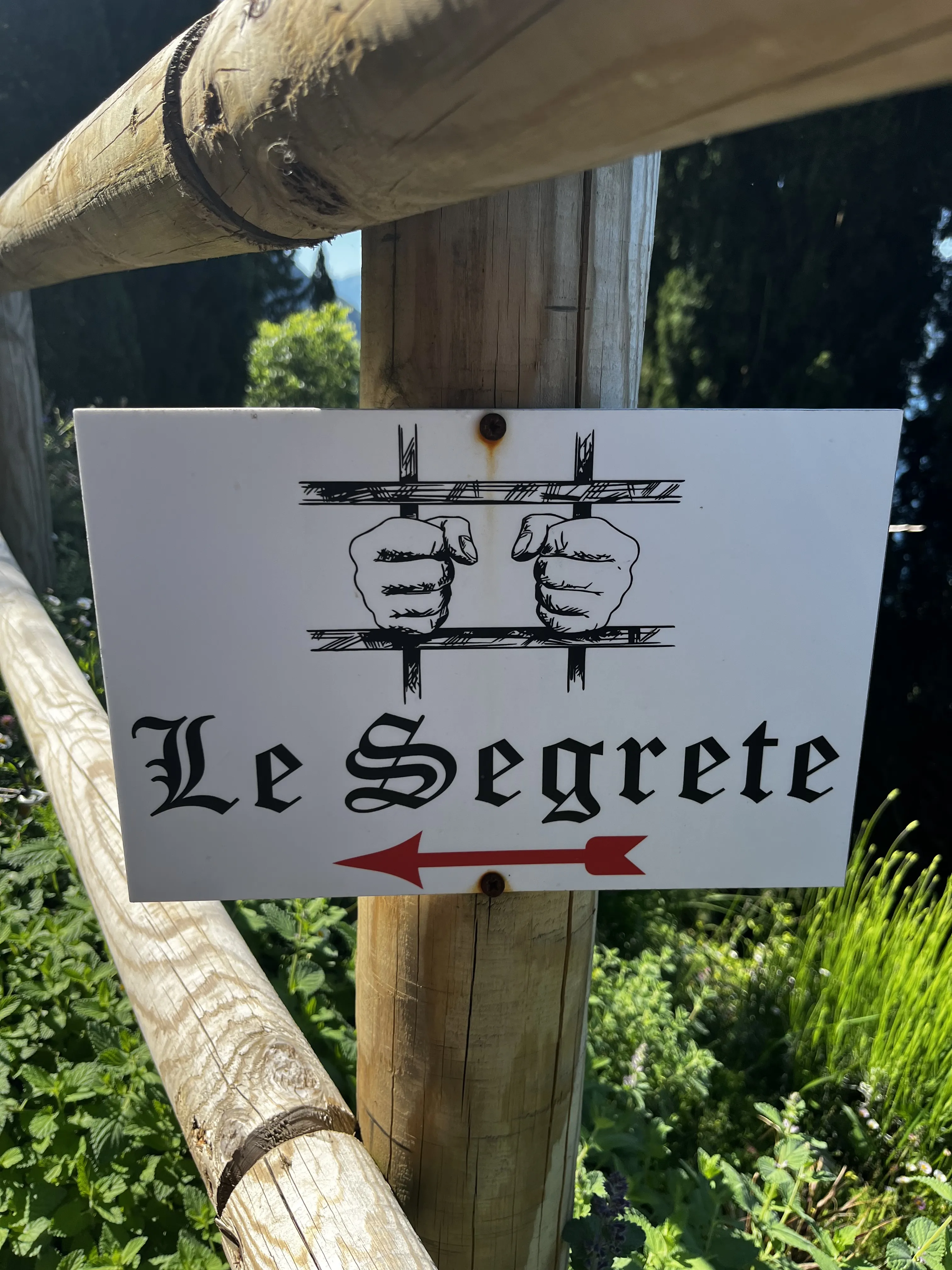 The hike up to Castello Di Vezio was intense – a steep cobbled track that wound its way up the hillside through the forest. After about a 25-minute trek, we reached the top and emerged from the forest trail at the grounds of the castle. We entered the grounds and looked around the gardens, which were lovely – with amazing views of Lake Como in all directions, shouldered by the steep hills and occasional snow-capped mountains.