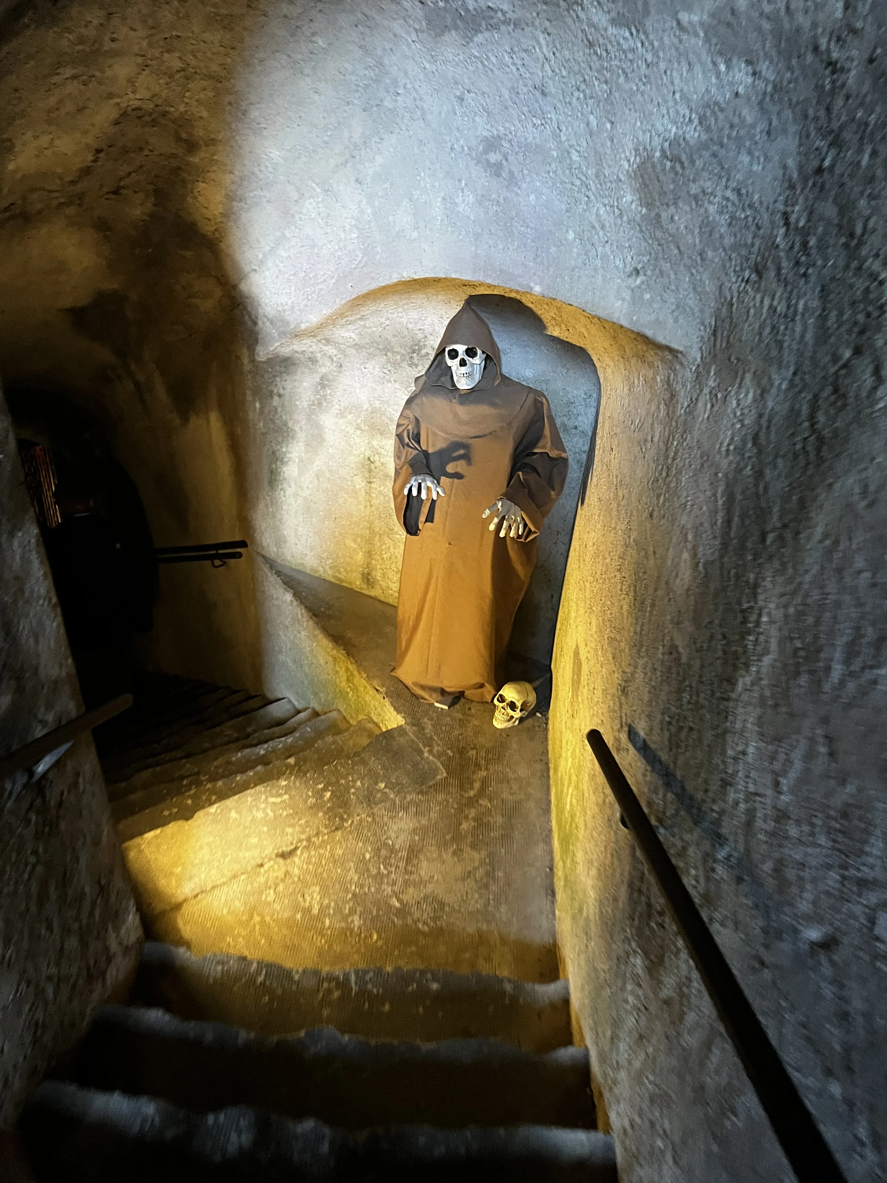 The locals who maintain the castle place ghost-like figures around the grounds, along with some other more quirky figures.