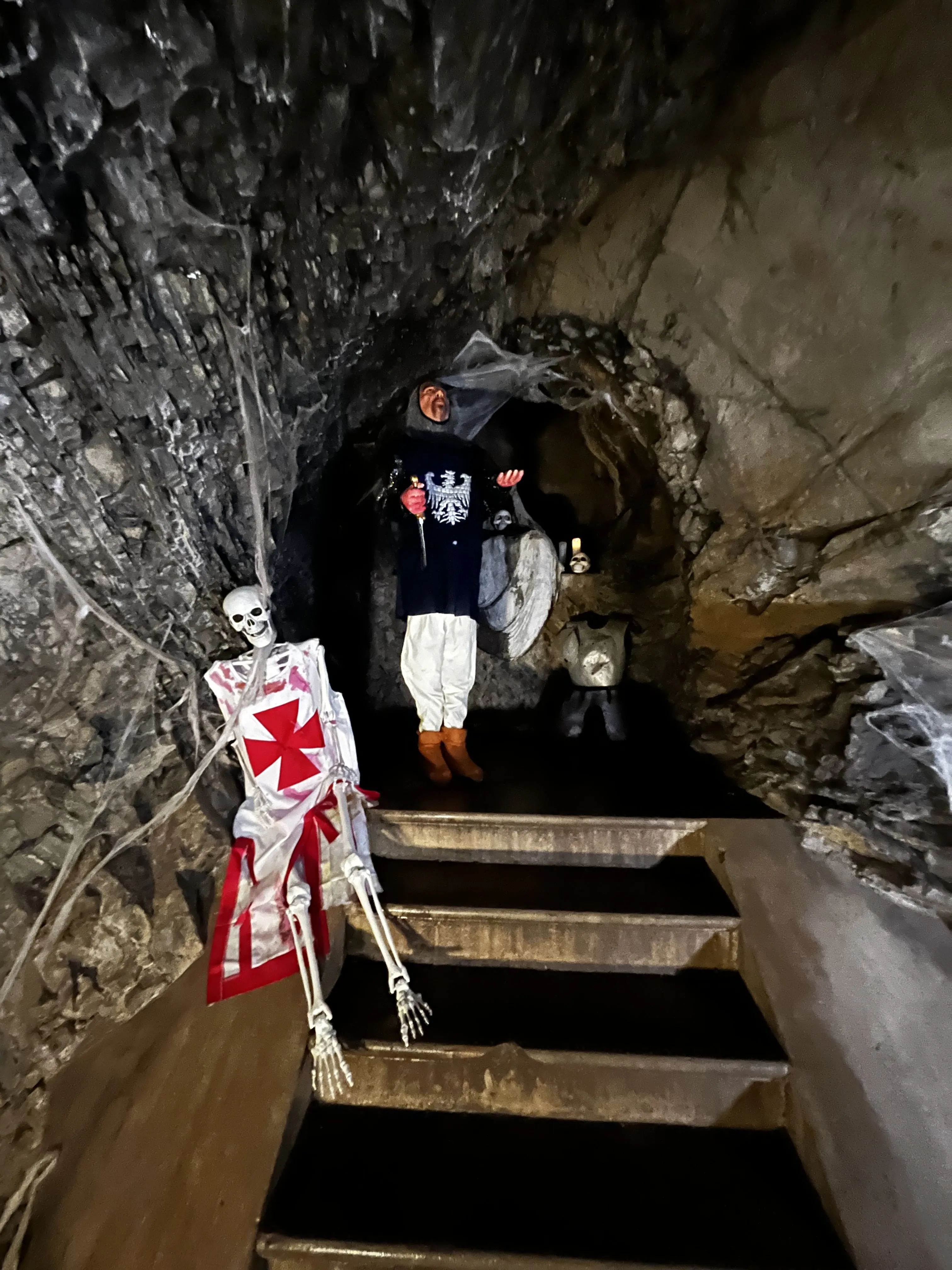 Inside the castle proper was a guard who would place you in the stocks and pretend to chop your head off. A bit of a laugh for A.