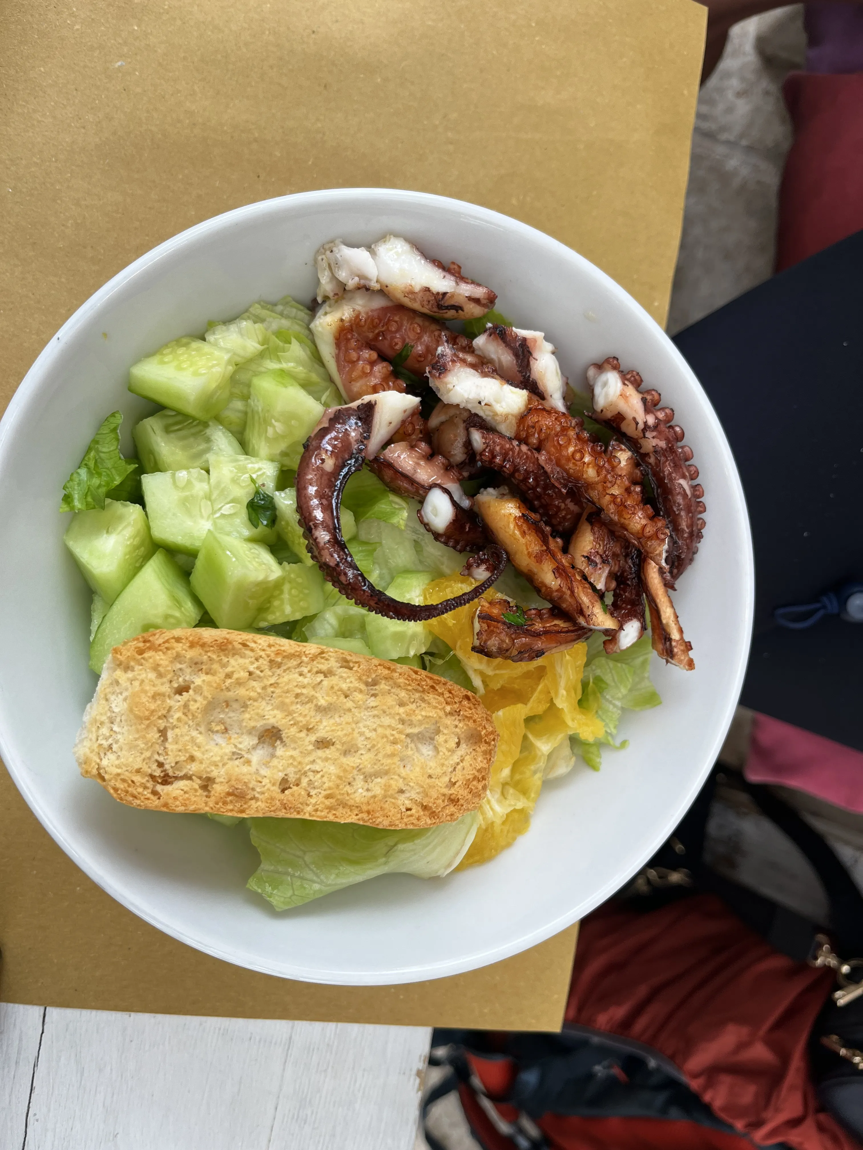As we wandered through town, we found a nice little place for lunch: a Margherita pizza, two octopus panini (our favourite), and an octopus salad (we love octopus 🐙).