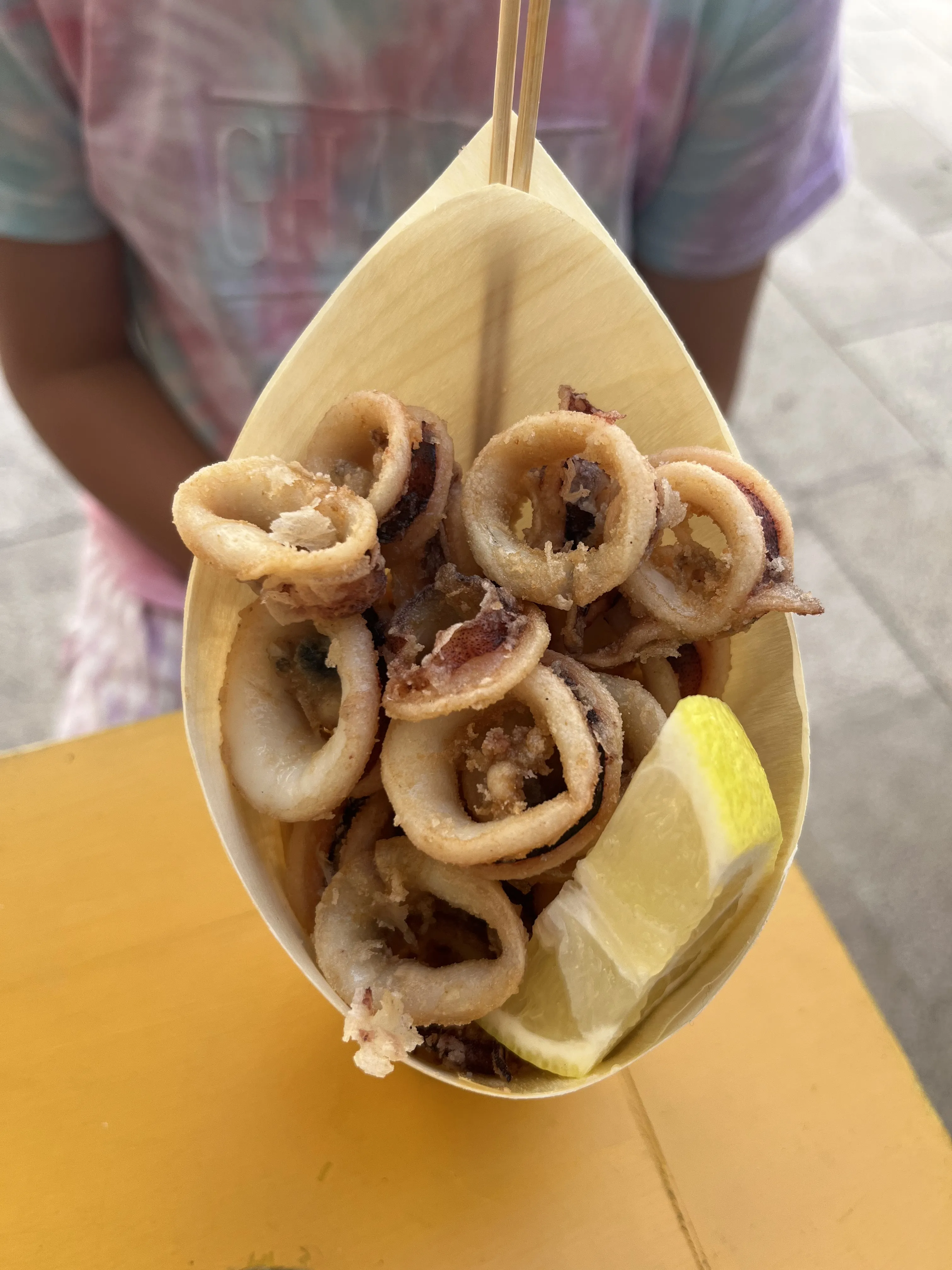 Today was all about chilling out, unwinding, and recharging. It was a wonderfully warm day in Monopoli—perfect for exploring a little and then hitting the beach. We grabbed lunch at the other café at the end of our street—this one focused mainly on fried calamari and octopus paninis (what could be better?). We ordered some calamari, fries, a few octopus paninis, and some drinks. An amazing lunch. By the afternoon, a breeze had come up. Rain is expected tomorrow. We still wanted some beach time, however, and didn’t let the breeze stop us—although it did change the previously mirror-like sea into a bit more of a choppy affair. ...